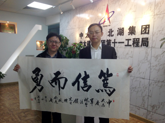 11月3日-4日,原全國人大常委會新聞局局長、現任中國詩詞文化國際交流協會會長傅強年、國家著名導演趙京輝及北京淳元信德文化傳播有限公司負責人汪曉蘭、吳凌一行四人組成的考察組蒞臨中太建設集團第十一工程局上?偛,洽談有關“中太夢-援藏文化行”合作事宜。十一局副局長陳可偉攜相關工作人員親切接待了考察組,并召開座談會,就文化援藏工作的相關細節進行商討,雙方表示要積極響應習近平主席在近期文藝工作座談會上的重要指示,將社會效益和經濟效益完美結合,辦好辦實文化援藏工作。