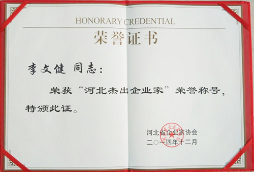 集團(tuán)公司名譽(yù)董事長李文健榮獲“河北杰出企業(yè)家”稱號(hào)