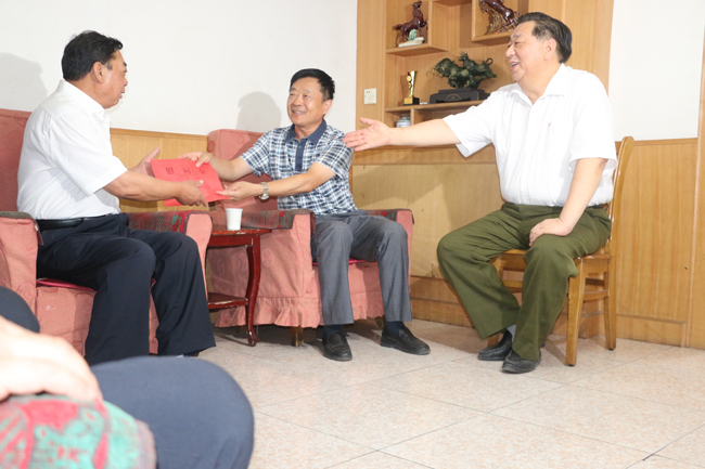 今年8月1日是中國人民解放軍建軍90周年紀念日。7月26日上午,廊坊市總工會副主席王泰山、經濟保障部部長張景炎在中太建設集團黨委書記張忠文、工會主席張娟娟的陪同下,先后來到馬潤生、李俊峰和田裕平三位集團公司退休軍轉干部家中,向他們致以節日的問候,并向他們贈送節日慰問金。市總工會表示,中太建設集團是廊坊市軍轉企業中的典型代表,是廊坊經濟建設發展中不可或缺的中堅力量,值此佳節之際,向曾經為全市發展奉獻終身的老軍轉干部致以慰問,是應該的更是有必要的,同時也要祝愿全體軍轉干部節日快樂。