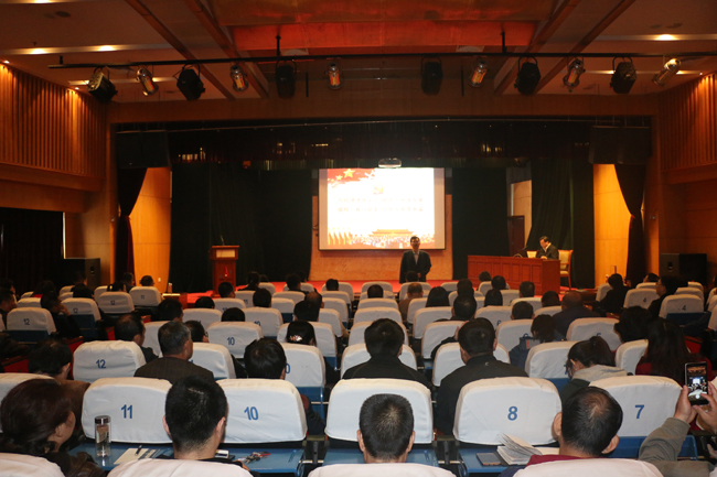 10月21日上午,以“與時俱進跟黨走 腳踏實地謀發展 團結一致向前看 創新發展譜新篇”為主題的中太建設集團“黨的十九大《報告》學習講座”在中太大廈二樓報告廳舉行,中太廊坊總部各集團板塊的機關黨員和所屬各單位部分黨員管理人員、入黨積極分子等共200多人參加講座,集團黨委副書記鐘崇鶴同志主持學習講座。