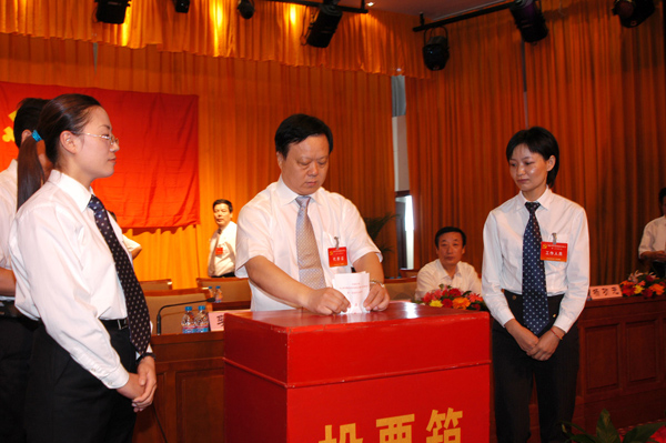 黨委書記李文健同志在黨代會上投票