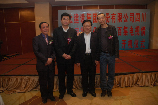 集團公司董事局主席李文健,集團董事、集團公司建安事業部常務副總經理梅興元與四川分公司總經理余元奇、副總經理彭慶平合影