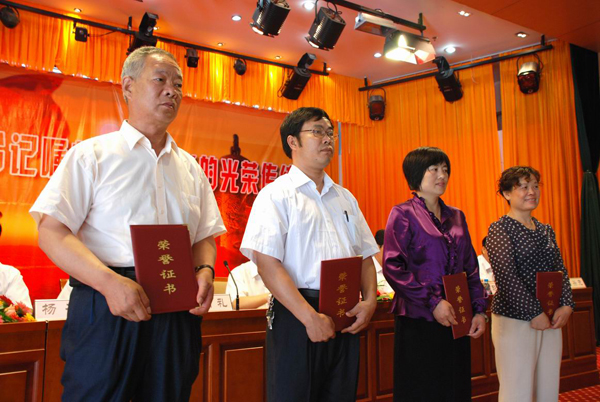 會議在莊嚴的國歌聲中拉開了序幕。大會對4個先進黨支部、37名優秀黨員、8名抗震救災優秀黨員、6名優秀黨務工作者、15名優秀黨小組進行了表彰。