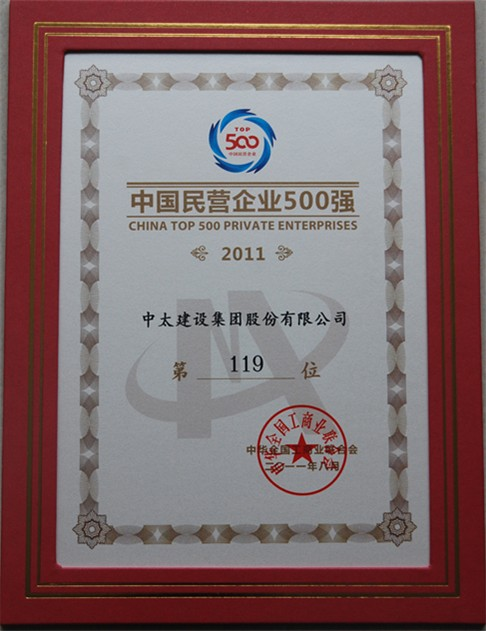 中太建設(shè)集團(tuán)排名2011中國(guó)民營(yíng)企業(yè)500強(qiáng)第119位