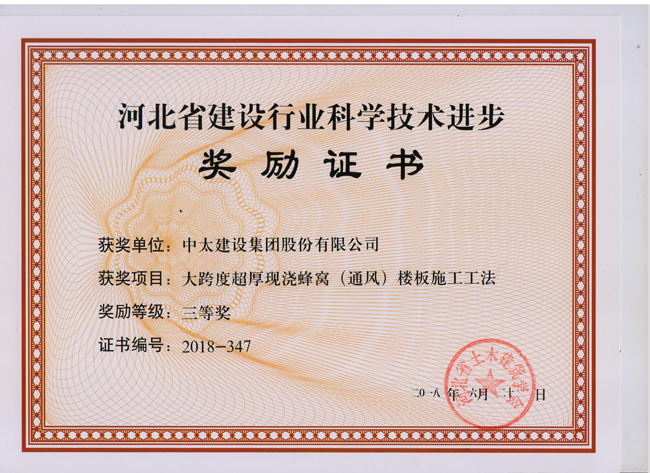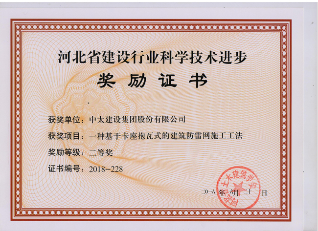 2018年河北省建設(shè)行業(yè)科學(xué)技術(shù)進步獎勵證書匯總