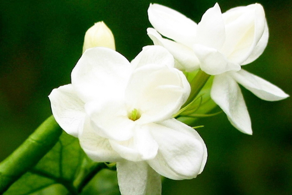 花朵兒很小很小,與淡綠的花蒂一起,展示素雅風格,意蘊著女人的內斂。花開季節,走近茉莉花,會有一陣陣郁香迎鼻撲來,猶如一位身著古典旗袍的古代女子,挽著發髻,腳著木屐,手持素雅小花手帕,迎面走來。美麗,大方,純潔,高雅,這就是茉莉花!