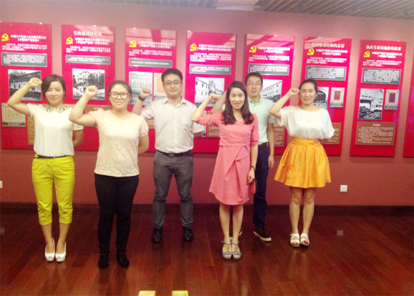 推開(kāi)那扇厚重的石庫(kù)門老房子的房門,仿佛回到了過(guò)去那個(gè)戰(zhàn)火硝煙的年代。在講解員的認(rèn)真解說(shuō)下,員工們共同重溫了中國(guó)共產(chǎn)黨的發(fā)展歷程,領(lǐng)略了建黨的艱辛與危險(xiǎn),更加體會(huì)到如今的勝利成果是有多么來(lái)之不易。滿眼的珍貴影像、圖文和實(shí)物資料,令員工們大開(kāi)眼界并不由得心潮澎湃。面對(duì)那份業(yè)已發(fā)黃但卻對(duì)于中國(guó)革命具有重要意義的《中國(guó)共產(chǎn)黨宣言》,員工們駐足之前,領(lǐng)會(huì)著革命的艱辛,感受著革命黨人誓要建立偉大新中國(guó)的澎湃熱血和堅(jiān)定不移的信念。一行人不約而同地在榮譽(yù)室前莊嚴(yán)宣誓:“珍惜當(dāng)下,努力奮斗!”